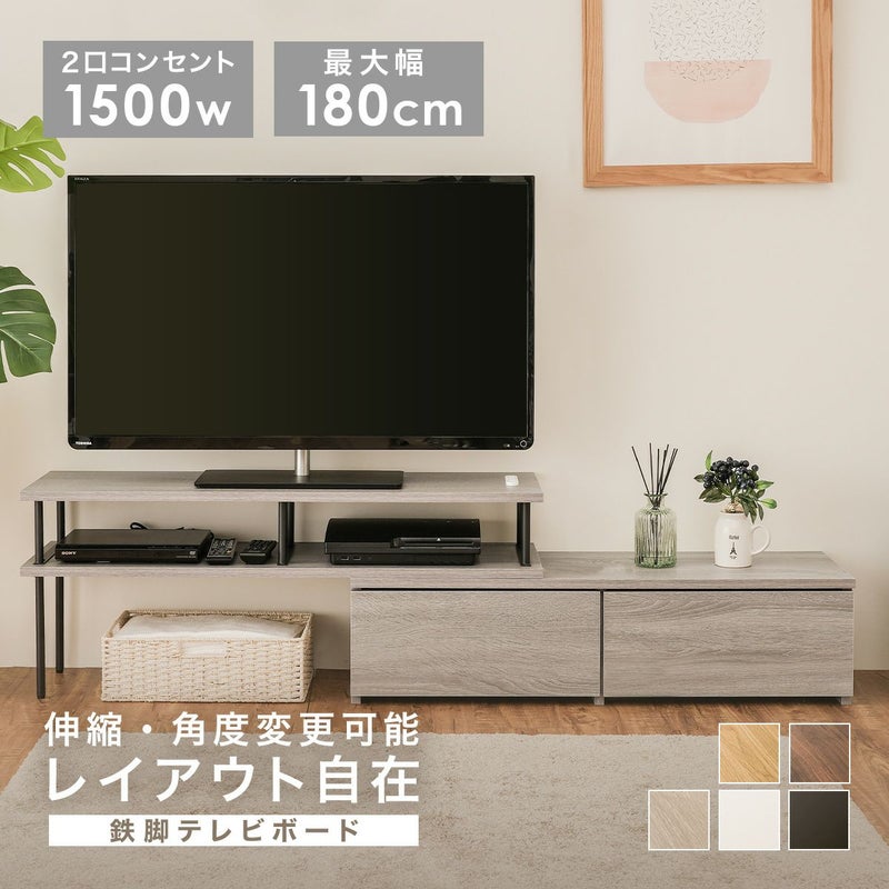 伸縮 テレビ台 ローボード コンセント付き コーナー 北欧 伸縮式 幅97cm 180cm テレビボード 引き出し収納 引き出し 収納 棚 ロータイプ モダン シンプル ナチュラル ブラウン グレー 42インチ 32インチ TVボード 伸縮型鉄脚テレビボード